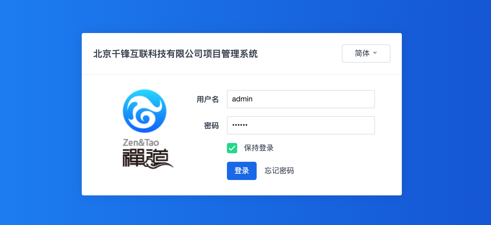 +打开浏览器,输入服务器的IP地址就可以访问禅道,如果愿意,也可以通过DNS解析绑定一个域名来进行访问,禅道的首页如下图所示,默认的管理员是`admin`,口令是`123456`。