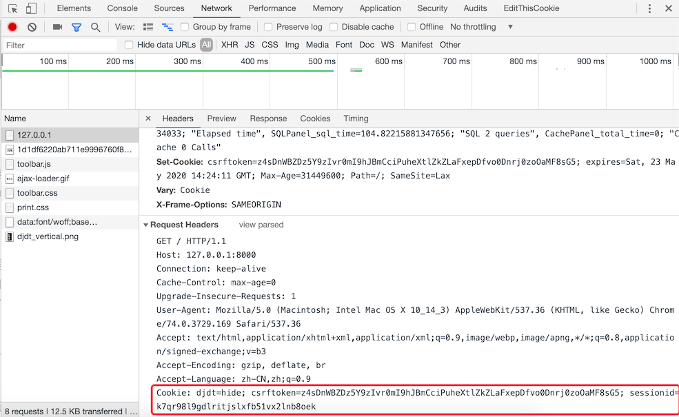 本地存储。现在的浏览器都支持多种本地存储方案,包括:cookie、localStorage、sessionStorage、IndexedDB等。在这些方案中,cookie是历史最为悠久也是被诟病得最多的一种方案,也是我们接下来首先为大家讲解的一种方案。简单的说,cookie是一种以键值对方式保存在浏览器临时文件中的数据,每次请求时,请求头中会携带本站点的cookie到服务器,那么只要将sessionid写入cookie,下次请求时服务器只要读取请求头中的cookie就能够获得这个sessionid,如下图所示。