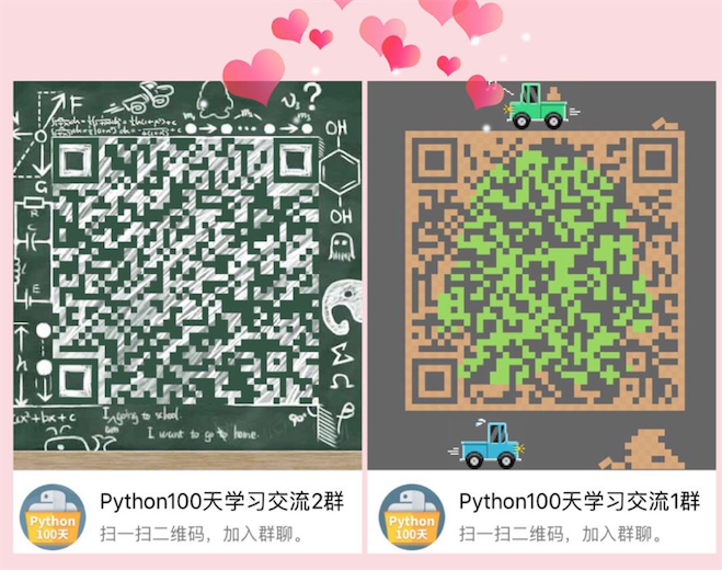 说明:最近有很多想学习Python的小伙伴申请单独加我微信和QQ,因为我自己平时也很忙,没办法一一解答大家的问题,我创建了Python100天学习交流1群和Python100天学习交流2群两个交流群,群号分别为680701107和213132758,二维码在下方。我的同事和朋友很多也在这个群里,他们都是优秀的Python开发者,有丰富的商业项目经验,我们在时间充足的时候会及时解答大家的问题,而且从Python语言入门到Web应用开发,从数据分析到机器学习,每个领域都有技术大咖为大家解惑答疑。以后我们争取每周做一次视频直播,以专题的形式分享Python开发的点点滴滴,同时还会不定期的举办线上和线下的技术交流和分享活动,小伙伴们可以加群进行交流。感谢千锋教育Python教学部对本群的支持。