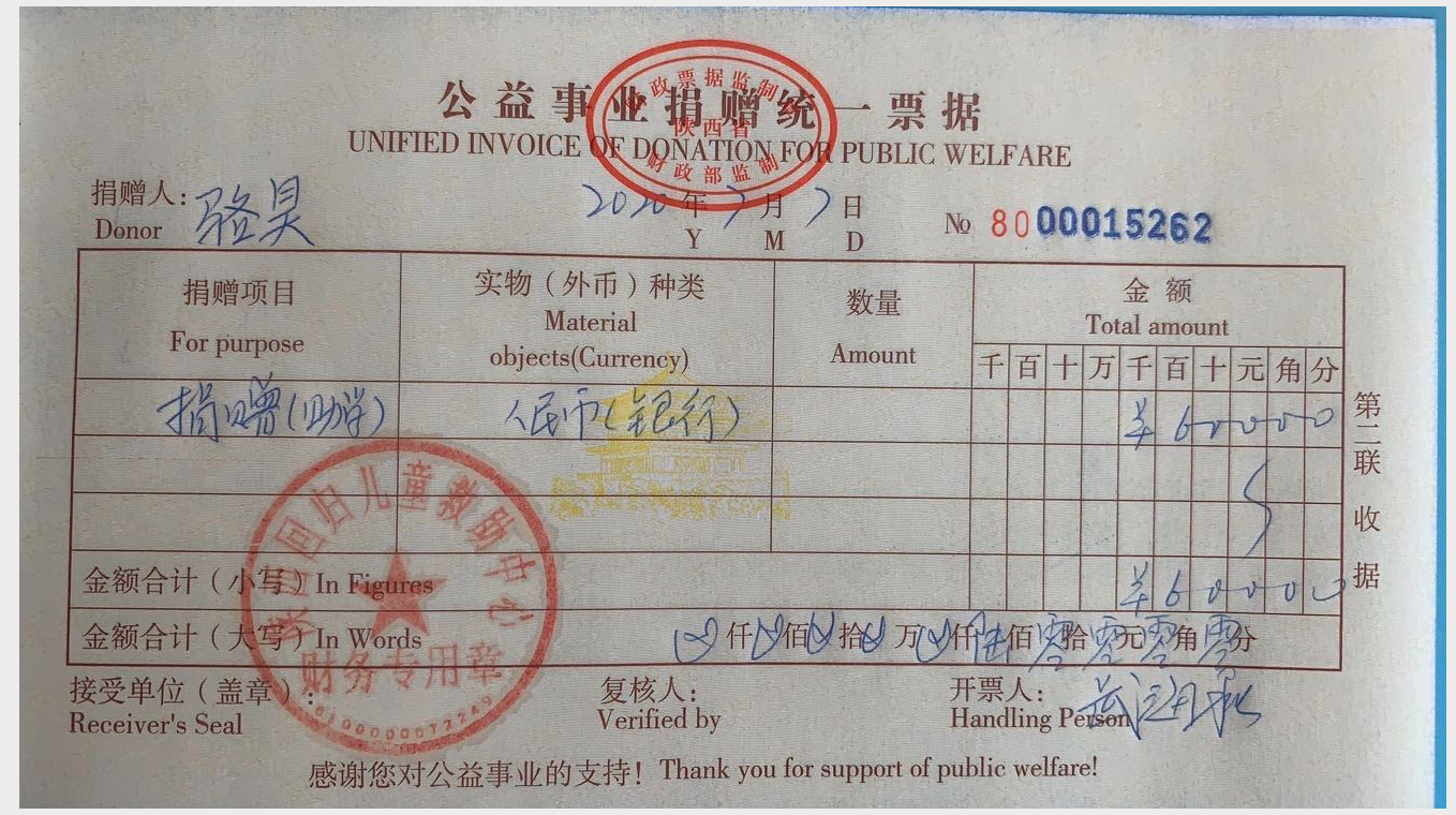 将近期收到的打赏捐赠给陕西回归儿童救助中心。