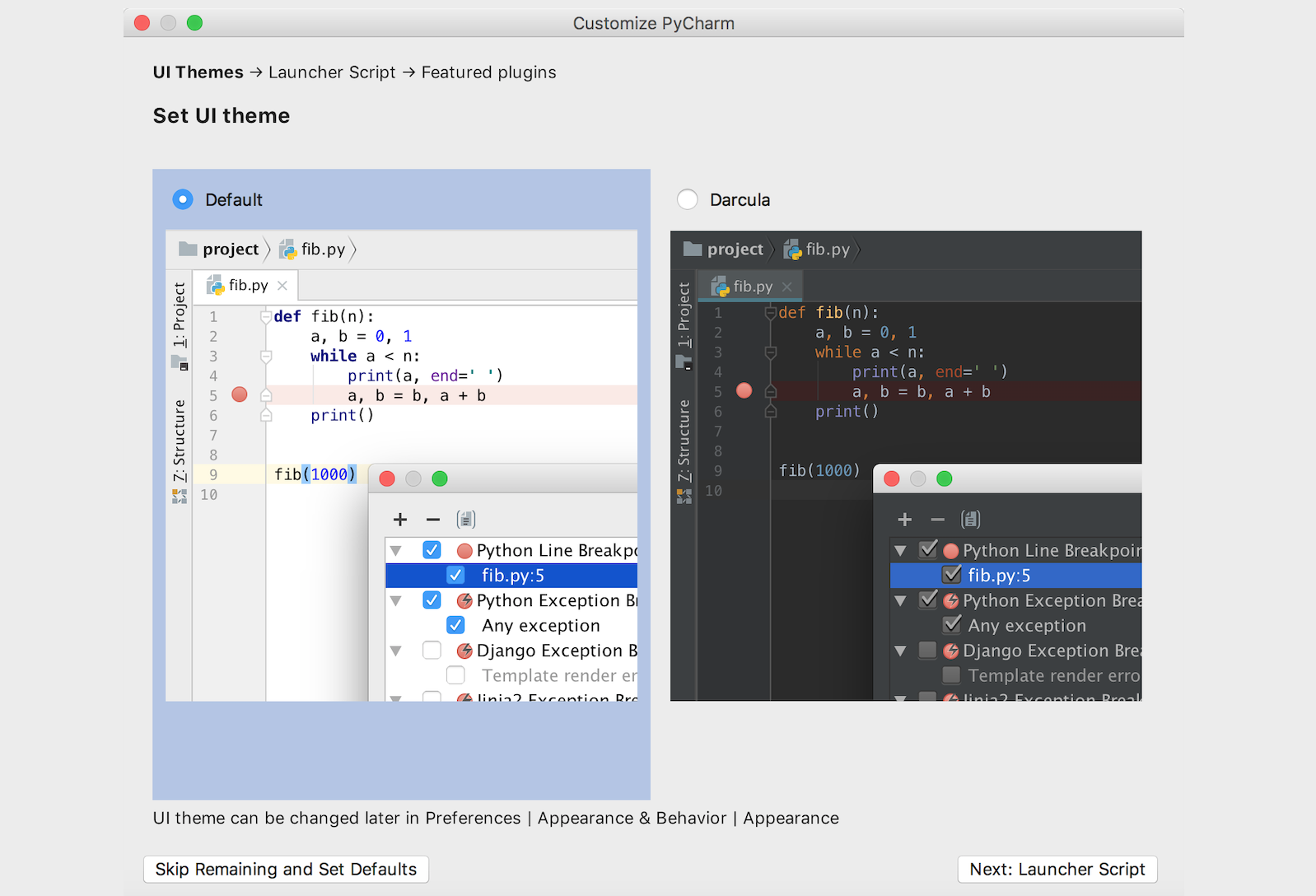 接下来是选择UI主题,可以根据个人喜好进行选择,深色的主题比较护眼而浅色的主题对比度更好。